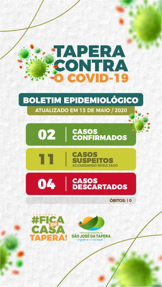 O Boletim Epidemiológico desta quarta-feira, 13, divulgado pela Secretaria Municipal de Saúde do município de São José da Tapera, sertão de Alagoas, trouxe a confirmação de seu segundo caso de Covid-19 ( Novo Coronavírus).